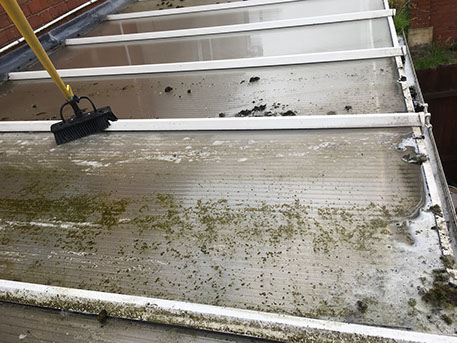 The main culprit is Green algae; if left, can spread over the whole of the glass roof panels making conservatory look extremely unsightly and nothing like it once was. The UPVC framework inside can also attract dirt especially from nicotine, causing discolouration of the frames and panels.